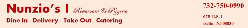 Nunzio's Pizza in Iselin - Eat in . Take Out . Delivery . Catering: 732-750-0990; 675 Rt.1 South, Iselin, NJ 08830